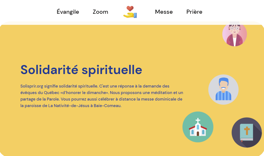 J'ai démarré un nouveau site solispir.org pour «solidarité spirituelle» afrin d'avoir un lieu pour partager la Parole.  C'est un rendez-vous dominical à 9:30!  La messe de La Nativité-de-Jésus est aussi diffusée après la rencontre sur le site.